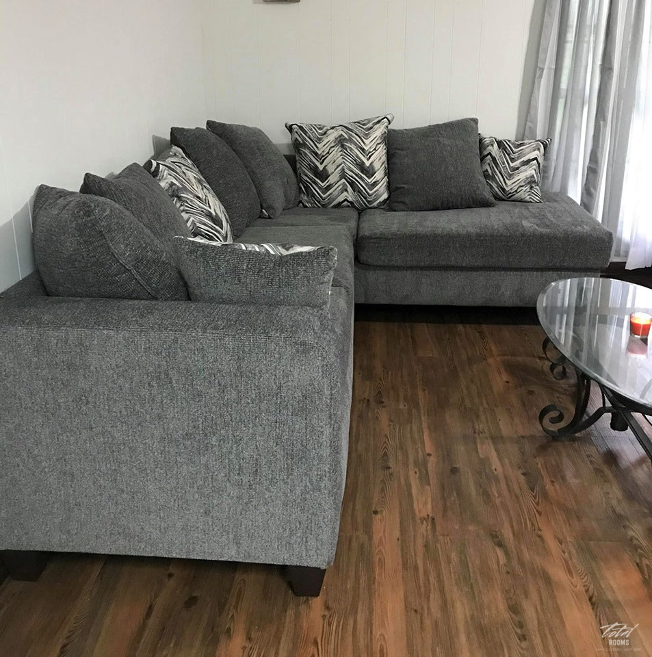 Transform your living area with this elegant Charcoal Sectional, a timeless choice for discerning homeowners. The deep charcoal fabric offers rich sophistication while maintaining remarkable versatility across interior styles. Included coordinating throw pillows enhance comfort and add textural depth to your seating arrangement. This sectional's spacious configuration provides ample seating for family gatherings and entertaining, while its clean lines preserve an understated, refined aesthetic. Durable upholstery ensures lasting quality, making this an investment piece that anchors your room with both style and substance.