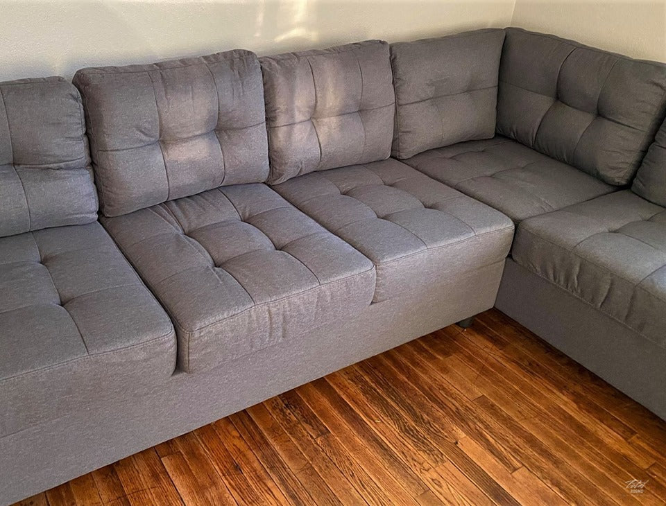 Experience timeless elegance with the James Collection Tufted Grey Linen Sectional, a masterfully crafted piece that balances aesthetic refinement with everyday functionality. Intricate button tufting adorns the grey linen surface, creating dimensional visual appeal and inviting tactile comfort. The reversible chaise lounge provides adaptable seating configurations, allowing you to customize your layout based on spatial requirements and lifestyle needs. Natural linen fabric breathes beautifully while developing a sophisticated lived-in patina that enhances its character over time. This sectional serves as an anchor for discerning interiors, offering generous seating capacity alongside understated luxury that transcends seasonal trends and design cycles.